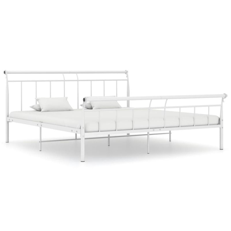 Насладете се на добър нощен сън с тази комфортна метална рамка за легло! Леглото има здрава конструкция от прахово боядисан метал, което го прави изключително здраво и издръжливо. Здравите ламели предлагат необходимата опора и комфорт. Можете да се насладите на страхотен сън всяка вечер на това легло! Моля, обърнете внимание: Доставката включва само рамката за легло. Матраци не са включени. Можете да проверите в нашия магазин за подходящи матраци.