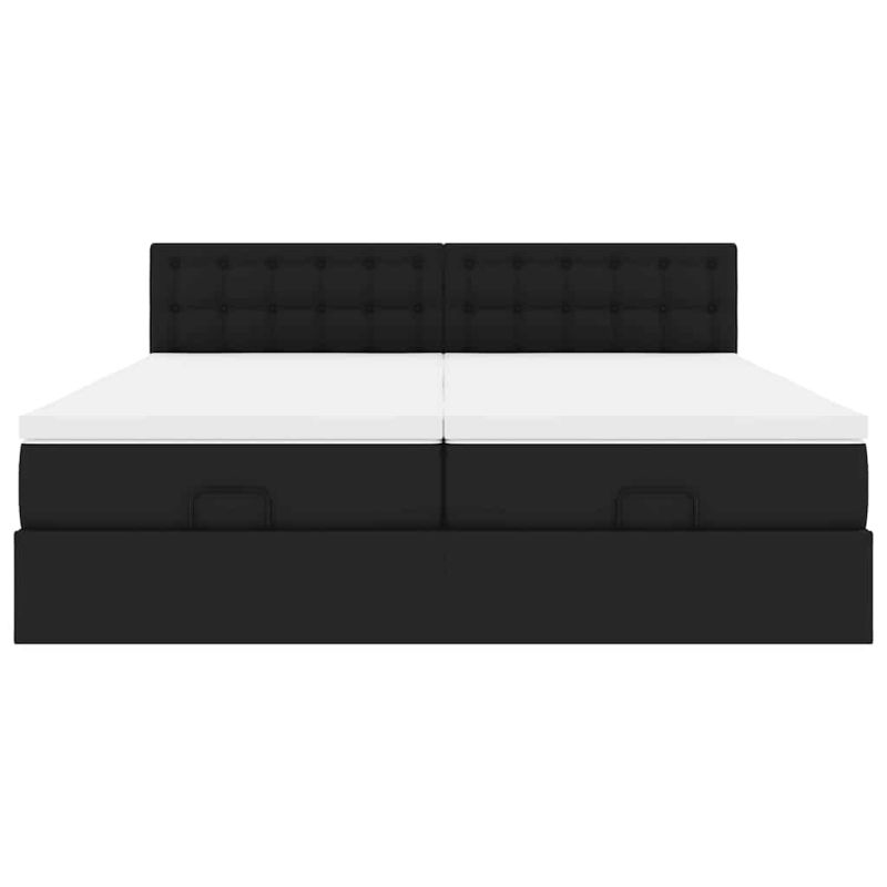 Османска легло с матраци&LED, черно, 200x200см, изкуствена кожа