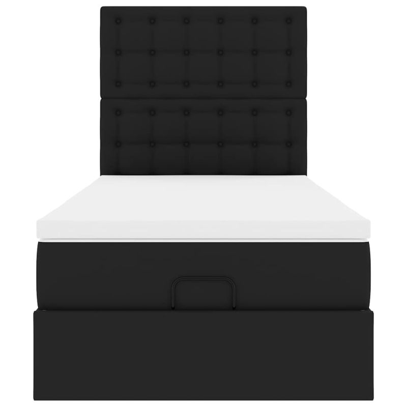 Османска легло с матрак&LED, черно, 100x200 см, изкуствена кожа