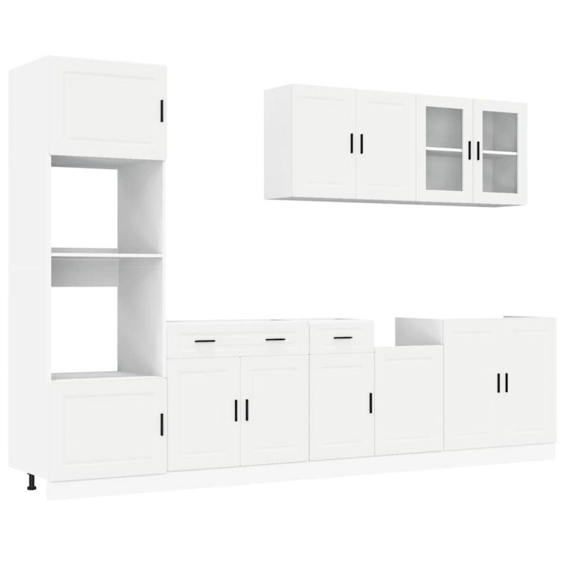 Комплект кухненски шкафове, 7 части, "Porto", бяло инженерно дърво