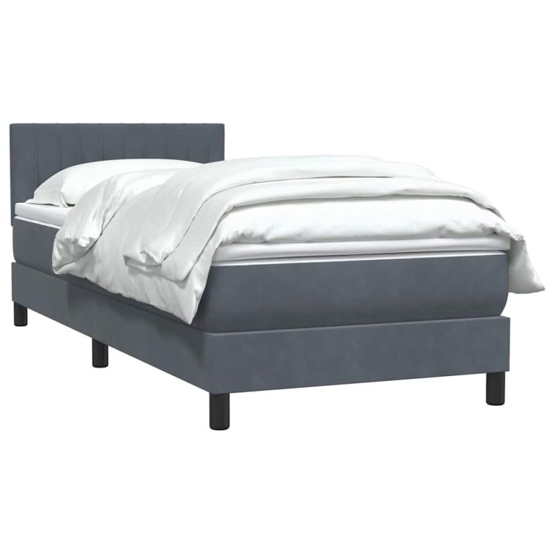 Боксспринг легло с матрак, тъмносиво, 90x210 см, кадифе