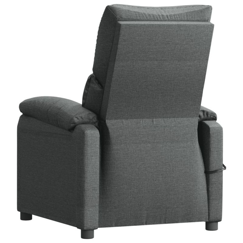 Облегнете се и се отпуснете в този изключително комфортен електрически масажен стол! Електрическа функция за накланяне: Столът с облегалка е оборудван с електрически мотор за функция за накланяне. Разполага с 3 позиции на легнало положение, така че можете лесно да регулирате облегалката и поставката за крака с включеното ръчно управление с 2 бутона според вашето удобство.Функция за вибрация: Представените 6 масажни точки ви позволяват да изпитате по-целенасочен масаж. Освен това включеното ръчно управление ви позволява да избирате различни програми за масаж. Функцията за масаж се захранва от USB конектора, но сертифицираният 5V USB източник на захранване не е включен.Удобно седене: Дебело подплатената седалка, облегалката и широките подлакътници, покрити с текстил, осигуряват уютно и топло усещане, което ви кара да се чувствате като в прегръдка, докато седите. Тъканта се отличава със семпъл и изчистен вид и е дишаща и издръжлива.Здрава и стабилна рамка: Рамката, изработена от дърво и метал, осигурява здрава структура и стабилност. Този накланящ се фотьойл е удобен и издръжлив. Този уред не е предназначен за използване от лица (включително деца) с намалени физически, сетивни или умствени способности или с недостатъчен опит и познания, освен ако не са получили надзор или инструкции за използването на уреда от лице, отговорно за тяхната безопасност. Този продукт не е играчка. Не позволявайте на деца да си играят с уреда.