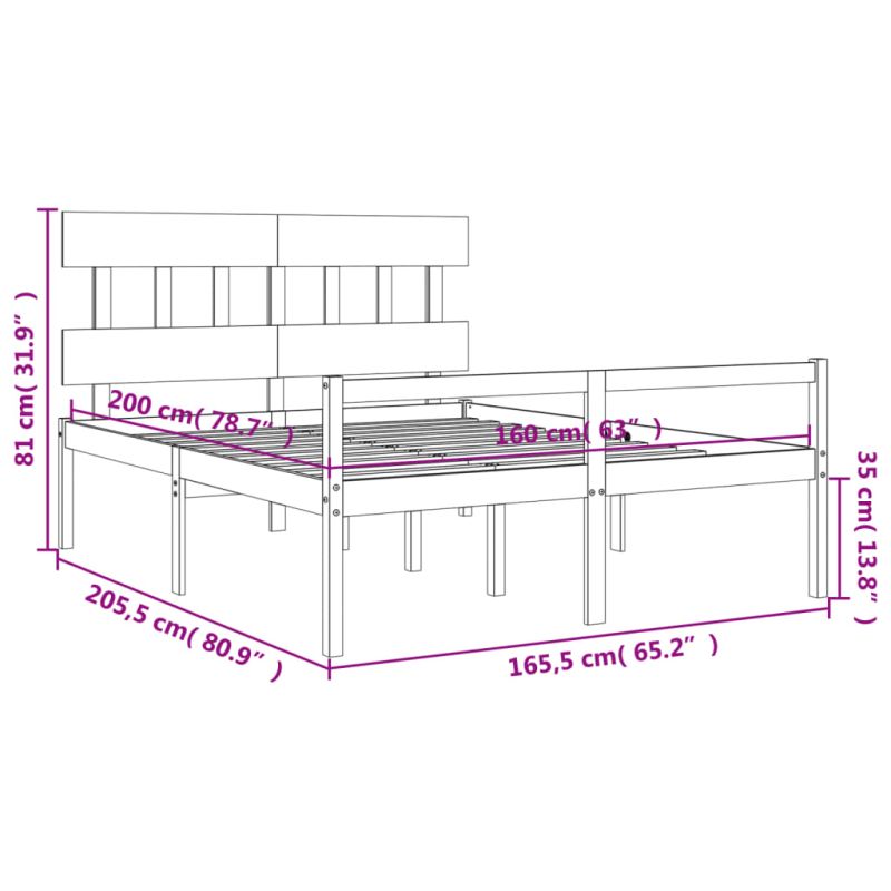 Легло за възрастни с табла, 160x200 см, масивно дърво