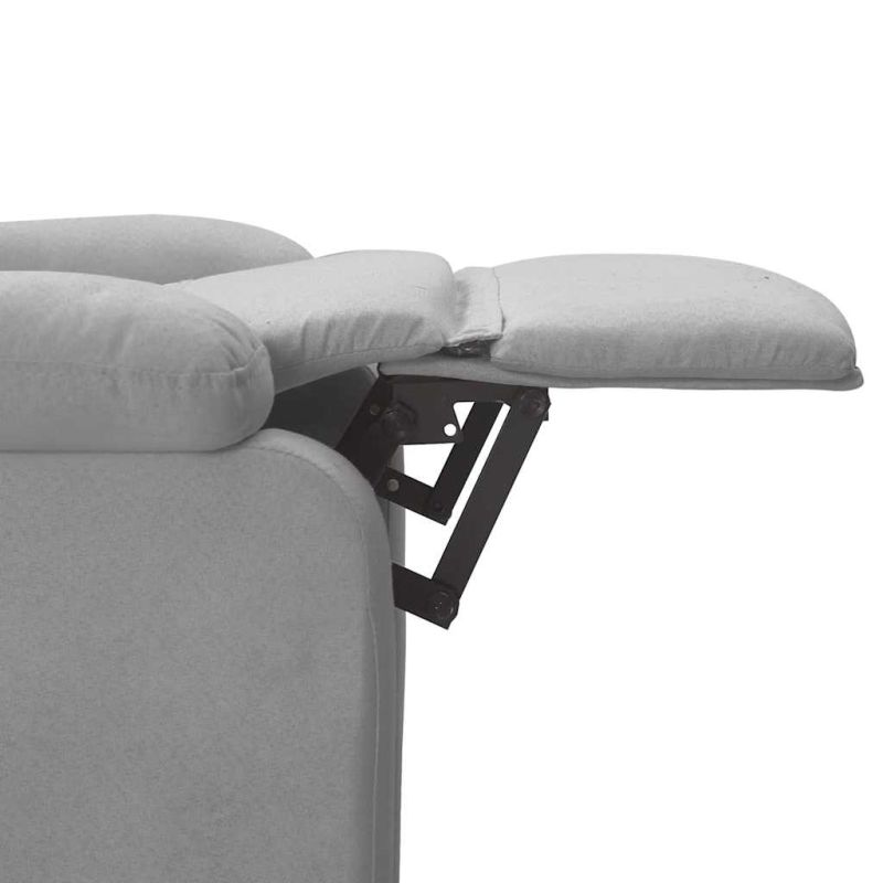 Облегнете се и се отпуснете в този изключително комфортен наклоняем стол! Функция за ръчно накланяне: Накланящият се стол е специално проектиран с 3 позиции на наклон, така че да можете да регулирате ръчно облегалката и поставката за крака според вашето удобство.Удобно седене: Дебело подплатената седалка, облегалката и широките подлакътници, покрити с текстил, осигуряват уютно и топло усещане, което ви кара да се чувствате като в прегръдка, докато седите. Тъканта се отличава със семпъл и изчистен вид и е дишаща и издръжлива.Здрава и стабилна рамка: Рамката, изработена от дърво и метал, осигурява здрава структура и стабилност. Този накланящ се фотьойл е удобен и издръжлив.