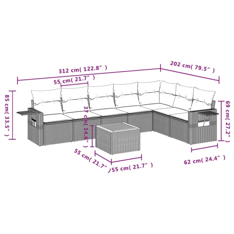 Този градински диван е идеалното допълнение към вашия заден двор, тераса или вътрешен двор, осигурявайки удобно и привлекателно пространство за разговори със семейството и приятелите или просто за почивка и забавление на открито. Издръжлив материал: PE ратан, известен също като полиратан, е здрав синтетичен материал с малко необходима поддръжка, който прилича на естествен ратан. Той е лек, лесен за почистване и често се използва за външни мебели поради своята издръжливост и устойчивост на атмосферни влияния.Функция за съхранение с водоустойчива чанта: Всяка градинска седалка разполага с място за съхранение под седалката, допълнено с водоустойчива чанта за съхранение на възглавници, играчки и други предмети. Вътрешните чанти имат горен капак и могат да бъдат здраво закрепени към седалките със закопчалки за допълнителна стабилност.Стабилен и лесен за почистване плот: Тази градинска маса има плот от акациево дърво, който е здрав, издръжлив и лесен за почистване с влажна кърпа.Удобна странична масичка: Тази външна мебел разполага със сгъваеми странични масички с газова пружина на подлакътниците, осигуряващи удобни места, за да държите най-важните неща леснодостъпни.Модулен дизайн: Този комплект външни мебели има модулен дизайн, което го прави напълно гъвкав и лесен за преместване, така че можете да създадете персонализирана подредба на външни мебели. Добре е да се знае:За да сте сигурни, че вашите външни мебели ще останат красиви, ви препоръчваме да ги защитите с водоустойчиво покривало.