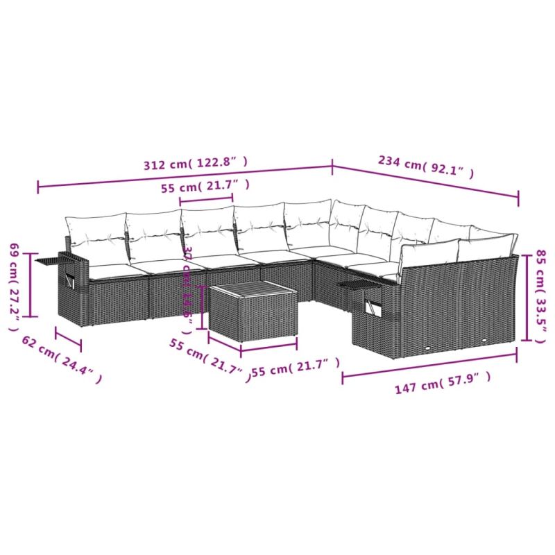 Този градински диван е идеалното допълнение към вашия заден двор, тераса или вътрешен двор, осигурявайки удобно и привлекателно пространство за разговори със семейството и приятелите или просто за почивка и забавление на открито. Издръжлив материал: PE ратан, известен също като полиратан, е здрав синтетичен материал с малко необходима поддръжка, който прилича на естествен ратан. Той е лек, лесен за почистване и често се използва за външни мебели поради своята издръжливост и устойчивост на атмосферни влияния.Функция за съхранение с водоустойчива чанта: Всяка градинска седалка разполага с място за съхранение под седалката, допълнено с водоустойчива чанта за съхранение на възглавници, играчки и други предмети. Вътрешните чанти имат горен капак и могат да бъдат здраво закрепени към седалките със закопчалки за допълнителна стабилност.Стабилен и лесен за почистване плот: Тази градинска маса има плот от акациево дърво, който е здрав, издръжлив и лесен за почистване с влажна кърпа.Удобна странична масичка: Тази външна мебел разполага със сгъваеми странични масички с газова пружина на подлакътниците, осигуряващи удобни места, за да държите най-важните неща леснодостъпни.Модулен дизайн: Този комплект външни мебели има модулен дизайн, което го прави напълно гъвкав и лесен за преместване, така че можете да създадете персонализирана подредба на външни мебели. Добре е да се знае:За да сте сигурни, че вашите външни мебели ще останат красиви, ви препоръчваме да ги защитите с водоустойчиво покривало.