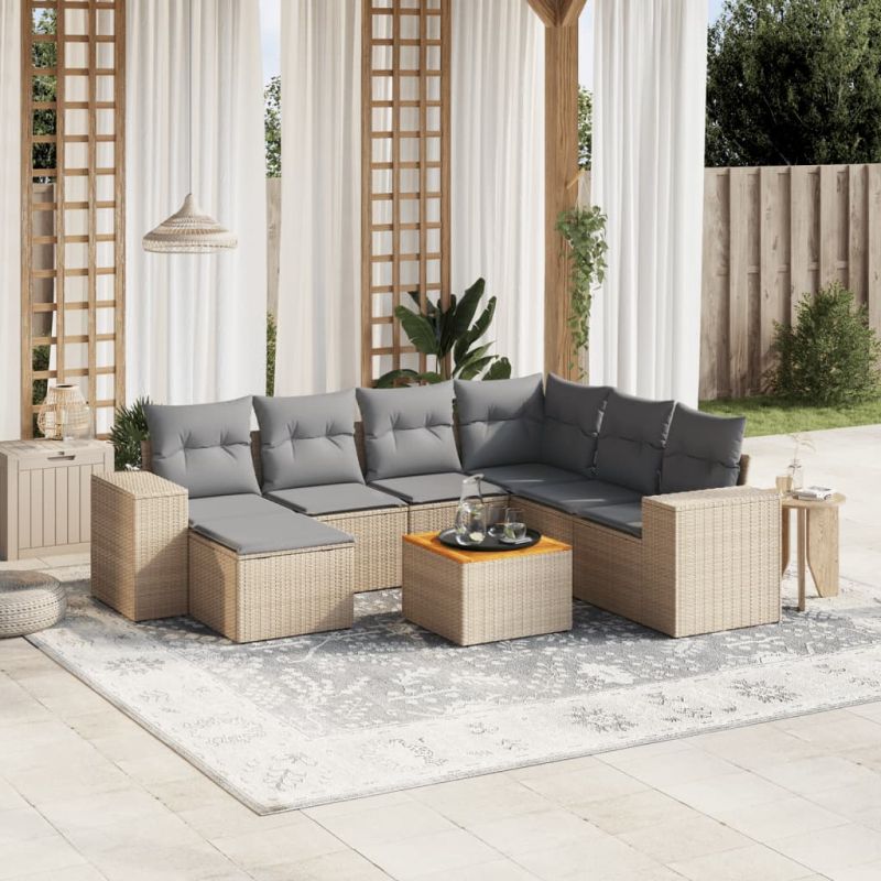 Този градински диван е идеалното допълнение към вашия заден двор, тераса или вътрешен двор, осигурявайки удобно и привлекателно пространство за разговори със семейството и приятелите или просто за почивка и забавление на открито. Издръжлив материал: PE ратан, известен също като полиратан, е здрав синтетичен материал с малко необходима поддръжка, който прилича на естествен ратан. Той е лек, лесен за почистване и често се използва за външни мебели поради своята издръжливост и устойчивост на атмосферни влияния.Стабилен и лесен за почистване плот: Тази градинска маса има плот от акациево дърво, който е здрав, издръжлив и лесен за почистване с влажна кърпа. Функция за съхранение с водоустойчива чанта: Всяка градинска седалка разполага с място за съхранение под седалката, допълнено с водоустойчива чанта за съхранение на възглавници, играчки и други предмети. Вътрешните чанти имат горен капак и могат да бъдат здраво закрепени към седалките със закопчалки за допълнителна стабилност.Удобна седалка: Тази мебел за открито, снабдена с плътно подплатени възглавници, предлага удобство при сядане.Модулен дизайн: Този комплект външни мебели има модулен дизайн, което го прави напълно гъвкав и лесен за преместване, така че можете да създадете персонализирана подредба на външни мебели. Добре е да се знае:За да сте сигурни, че вашите външни мебели ще останат красиви, ви препоръчваме да ги защитите с водоустойчиво покривало.