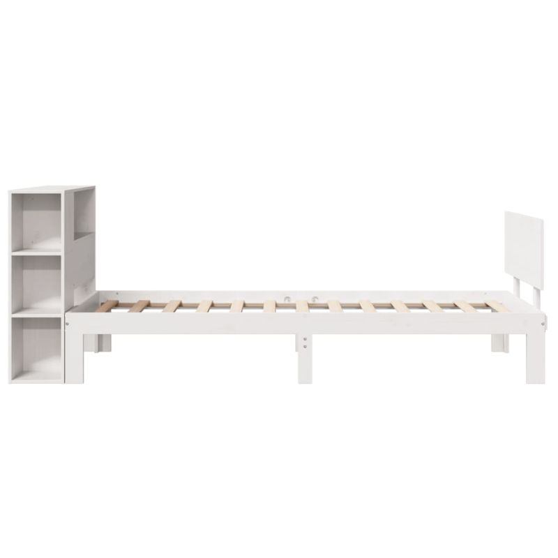 Легло с рафтове за книги, без матрак, бял, 90x190 см, бор масив