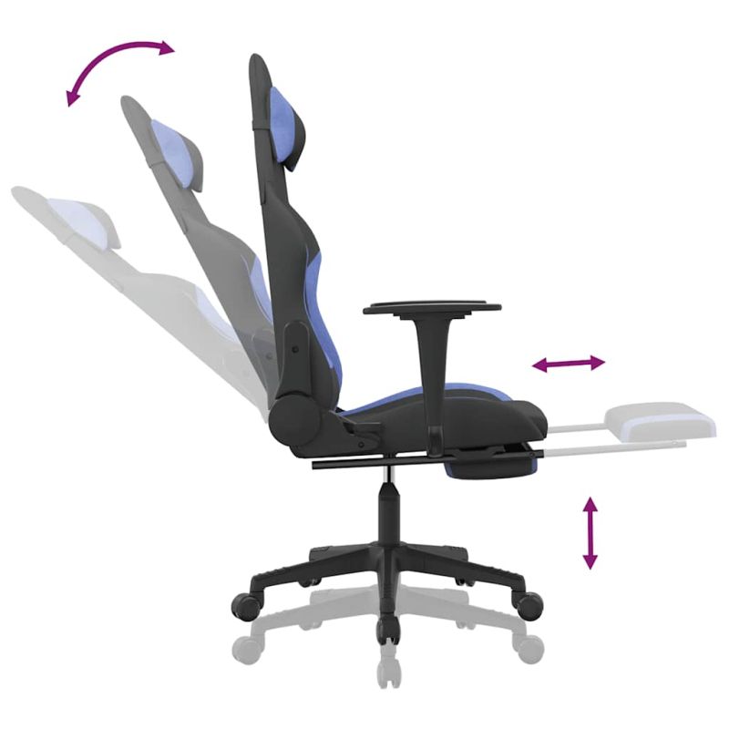 Начало Дом и градина Мебели Столове Геймърски столове Масажен гейминг стол с опора за крака черно и синьо плат