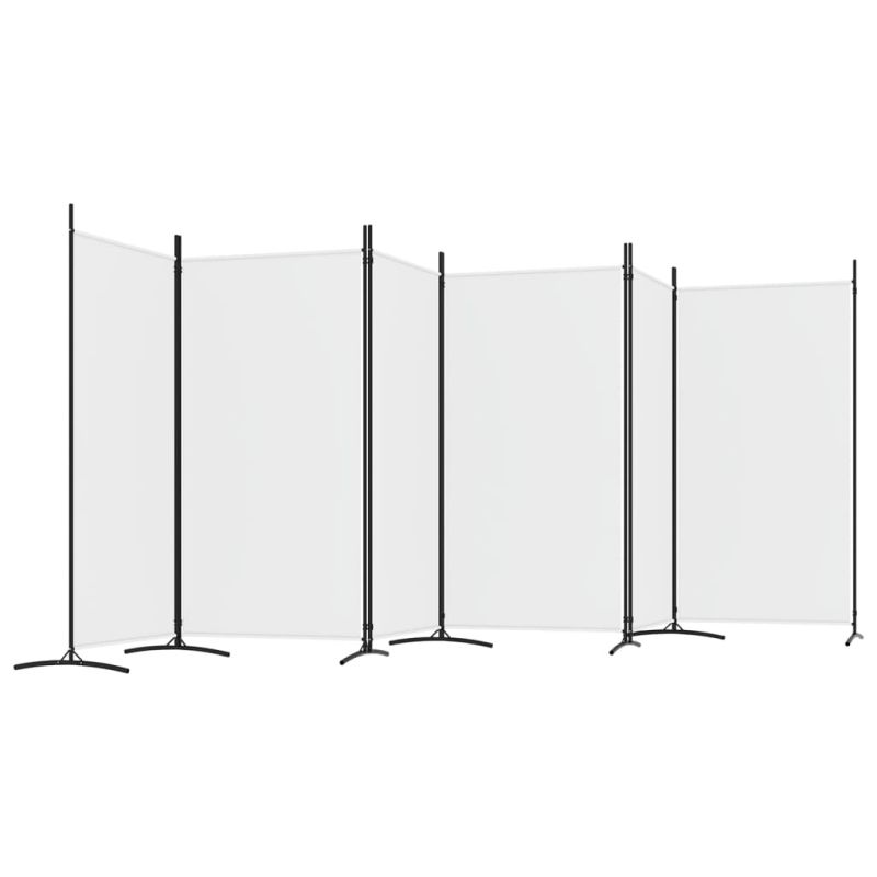 Параван за стая, бял, 6 панела, 520x180 см, плат