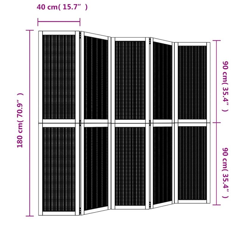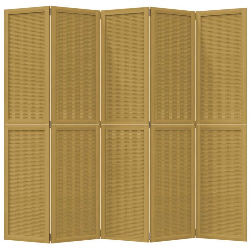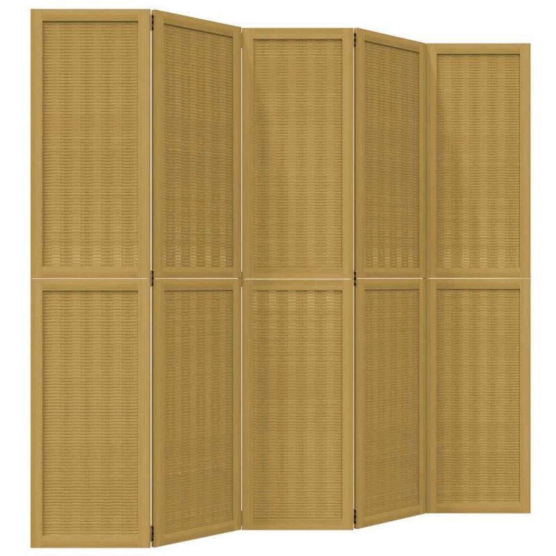Разделител за стая, 5 панела, кафяв, дърво пауловния масив