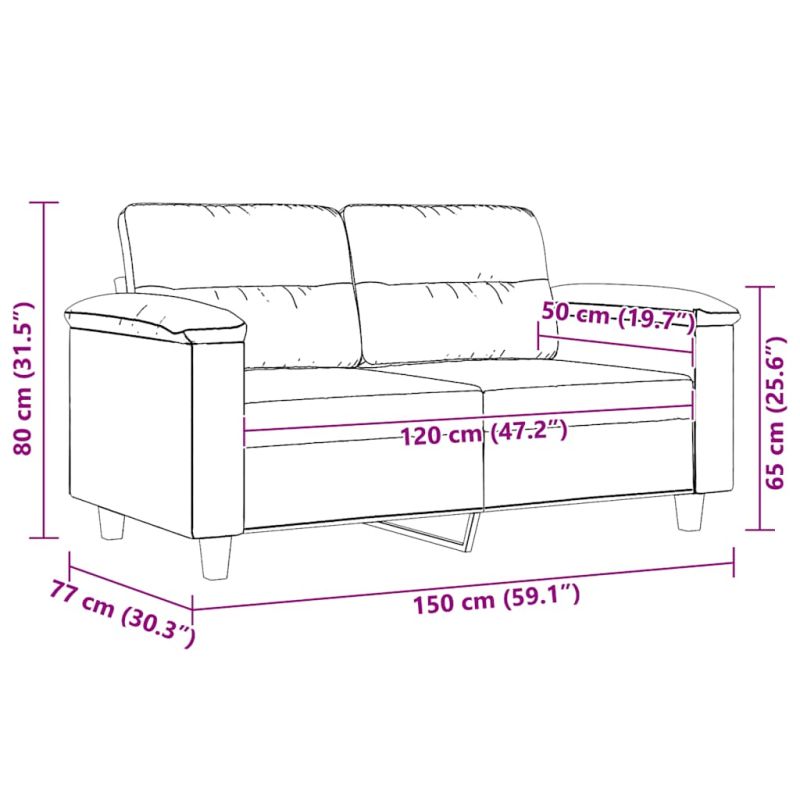 Този 2-местен диван е отлично място за вашето време за разговори, четене, гледане на телевизия или просто почивка. Той е предназначен да бъде фокусна точка във вашия дом. Издържлив микрофибър: Микрофибърът е синтетична тъкан, състояща се от ултрафини влакна, които са особено устойчиви на петна. Микрофибърната тъкан е чудесен избор за мебелна тапицерия, благодарение на своята издръжливост и лесно почистване.Здрава и стабилна рамка: Металната рамка на тапицирания диван осигурява здравина и стабилност.Удобна седалка: Диванът е много удобен с дебело подплатените седалки, подлакътниците и възглавниците за гърба.Привличащ вниманието дизайн: С изчистен, но модерен дизайн, това канапе е предназначено да привлича вниманието във вашата стая.