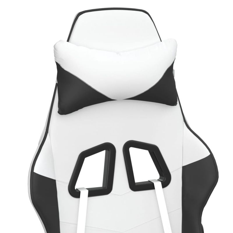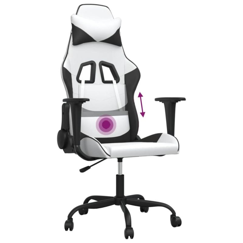 Масажен гейминг стол, бяло и черно, изкуствена кожа