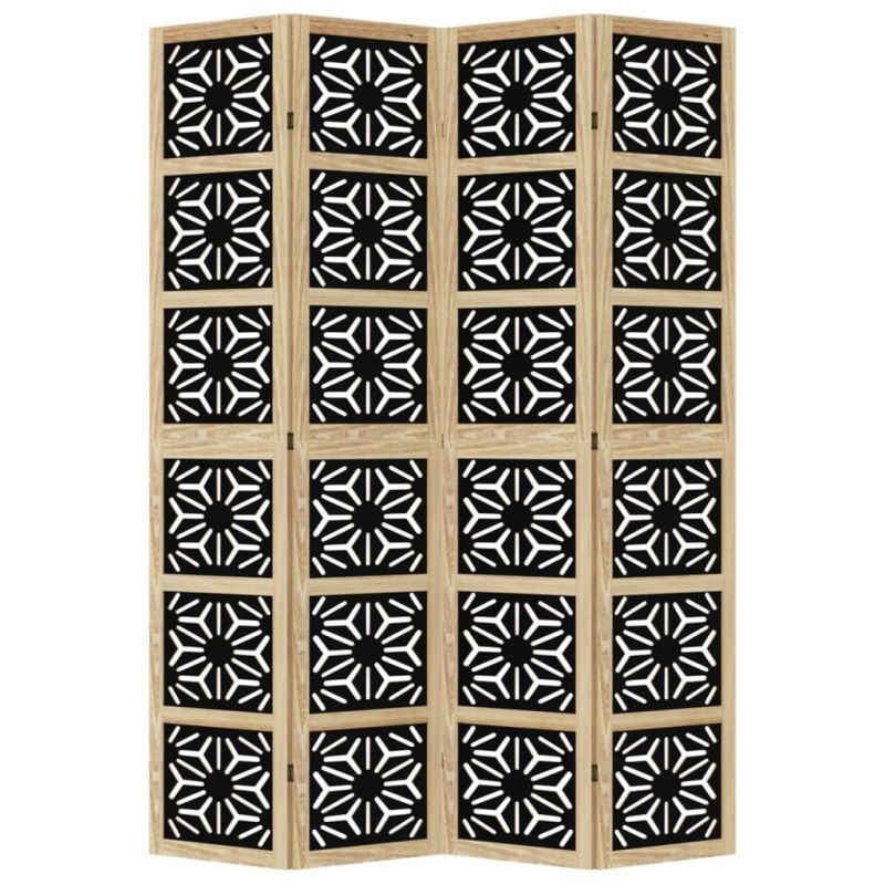 Разделител за стая 4 панела кафяво-черно дърво пауловния масив
