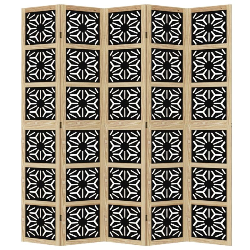 Разделител за стая 5 панела кафяво-черно дърво пауловния масив