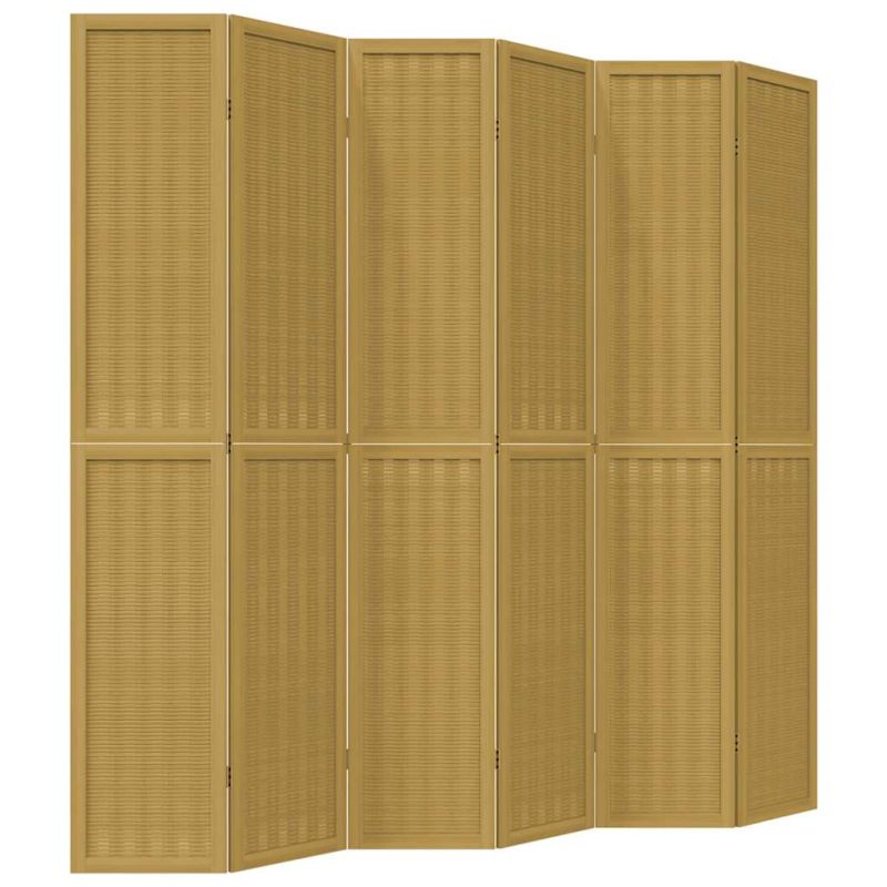 Разделител за стая, 6 панела, кафяв, дърво пауловния масив