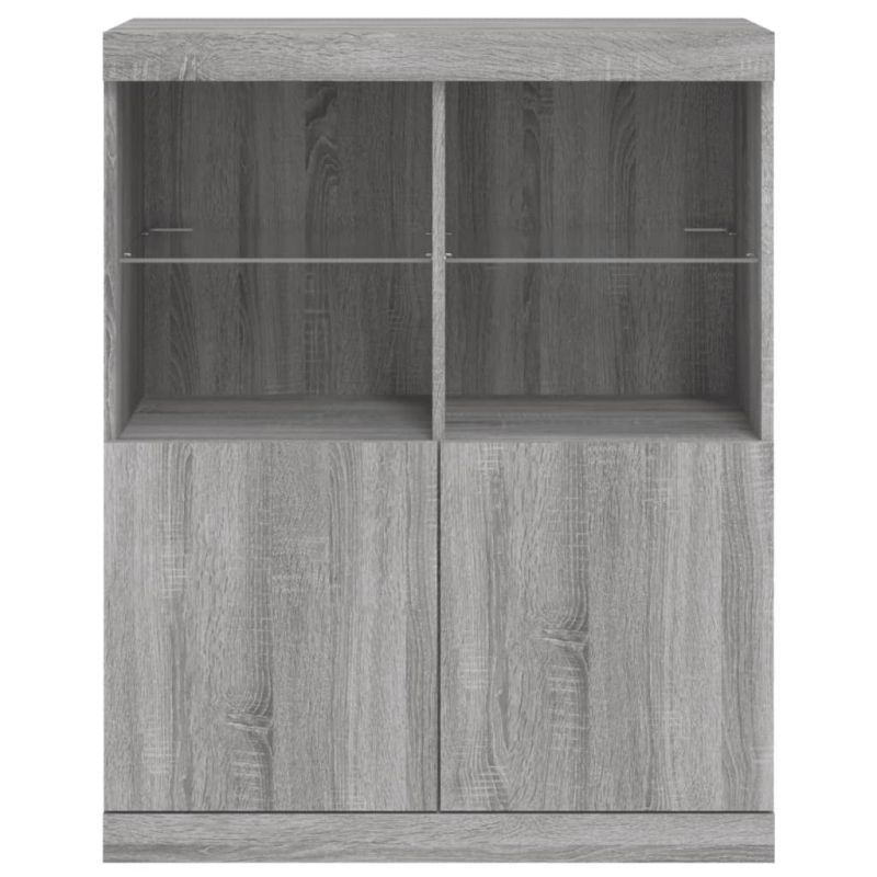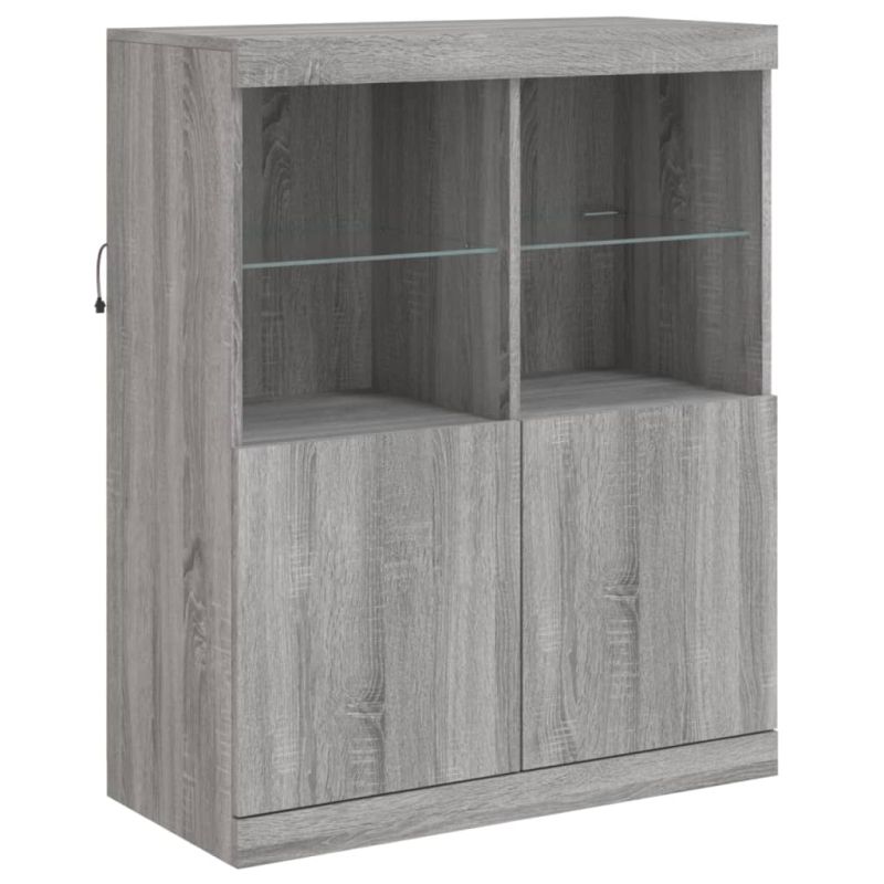 Сайдборд с LED светлини, сив сонома, 81x37x100 см