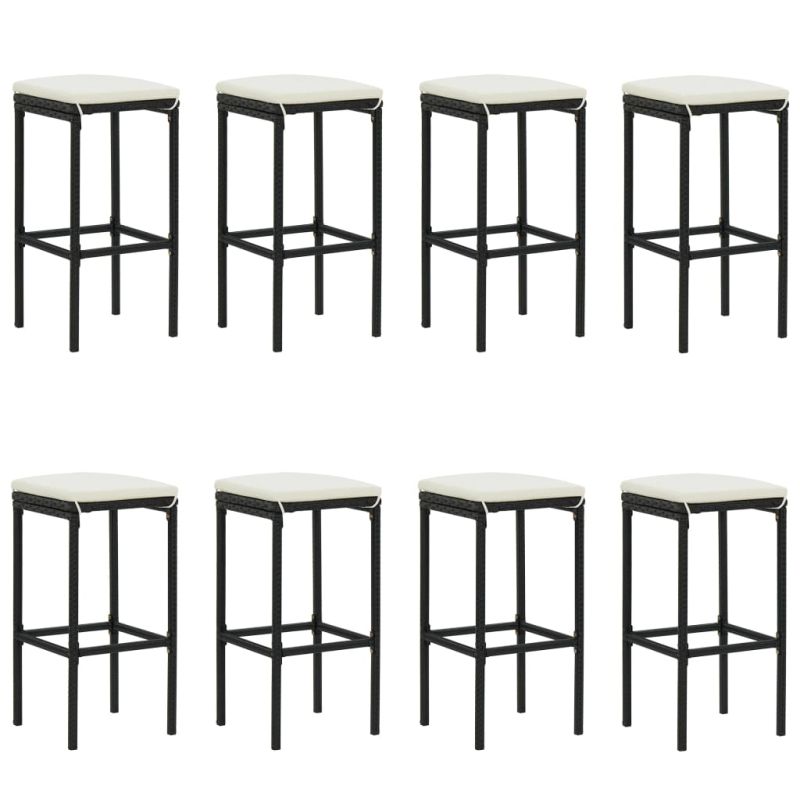 Градински бар комплект с възглавници, 9 части, черен