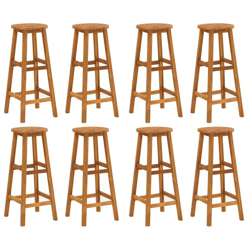 Отличаващи се с рустик дизайн, тези дървени бар табуретки са идеални за разговори с приятел или просто да се насладите на спокойните слънчеви бани на открито! Масивна акациева дървесина: Масивното акациево дърво е красив естествен материал. Акациевото дърво е тропическа твърда дървесина, която е плътна, здрава и издръжлива.Дълготрайна употреба: Изработени от масивна акациева дървесина, тези дървени бар табуретки имат силата да понесат тежестта и да издържат на износването във времето.Допълнително изживяване при сядане: Тези бар табуретки за закуска, с подложки за крака на две височини, осигуряват допълнителен комфорт при сядане. Максимално 110 кг на седалка.