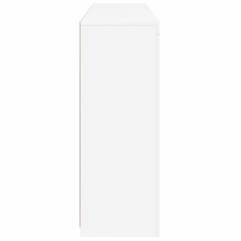 Украсете стаята си с тези модерни бюфет с LED светлини, които се съчетават лесно с мебели във всеки стил във вашия дом. Премиум материал: Инженерната дървесина е с изключително качество с гладка повърхност и се отличава със здравина, стабилност и устойчивост на влага.Достатъчно място за съхранение: Тези сайдборди осигуряват много място за съхранение, за да държите вашите списания, книги, дистанционни управления и други дребни предмети добре организирани и леснодостъпни.Декоративна функция: Здравият плот на бюфетните шкафове е идеален за излагане на декоративни предмети, фоторамки или саксийни растения.Регулируеми LED светлини: Тези шкафове за съхранение са оборудвани с RGB LED светлини, които имат различни менюта за промяна на цвета на светлината и автоматично регулиране, украсявайки дома ви цветен и красив. Внимание:За предотвратяване на преобръщане този продукт трябва да се използва с предоставения анкер за стена.Добре е да се знае:Продуктът има USB конектор, който изисква сертифициран 5V USB захранващ източник (не е включен). Не използвайте този артикул, ако някой от компонентите е счупен, скъсан или липсва. Този продукт се захранва с DC 5V, но сертифицираният 5V USB източник на захранване не е включен в комплекта. По-високото напрежение може да доведе до прегряване на устройството и да доведе до повреда на устройството и потенциален риск от прегряване и пожар.