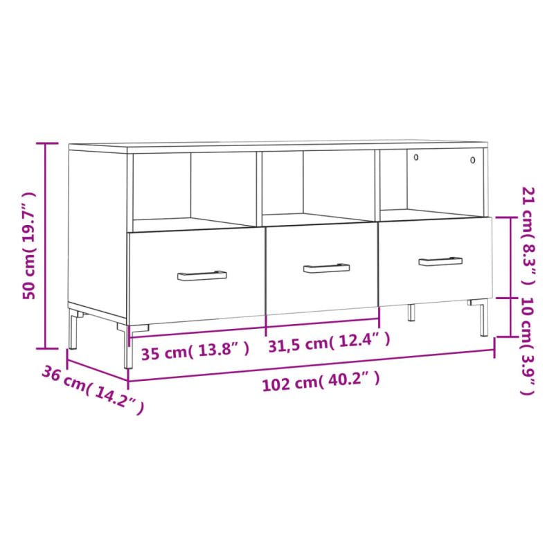 ТВ шкаф, бял, 102x36x50 см, инженерно дърво
