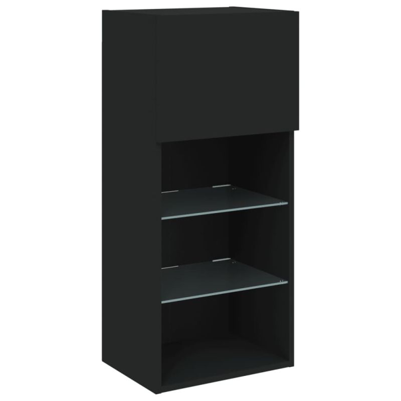 ТВ шкаф с LED осветление, черен, 40,5x30x90 см