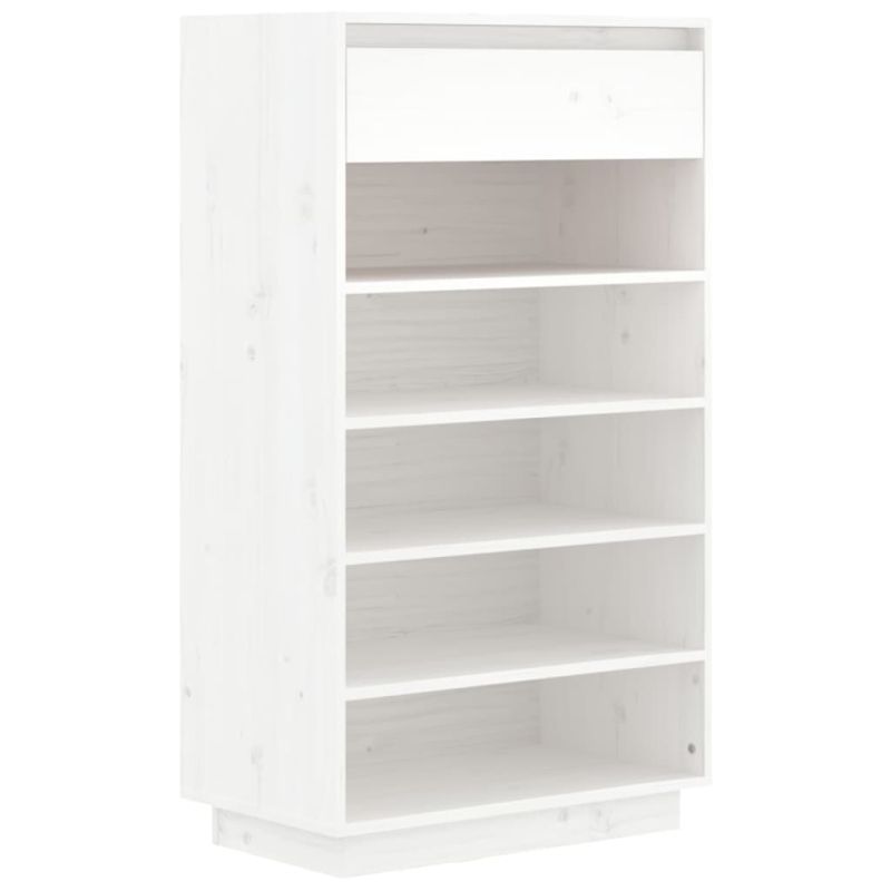 Шкаф за обувки, бял, 60x34x105 см, бор масив