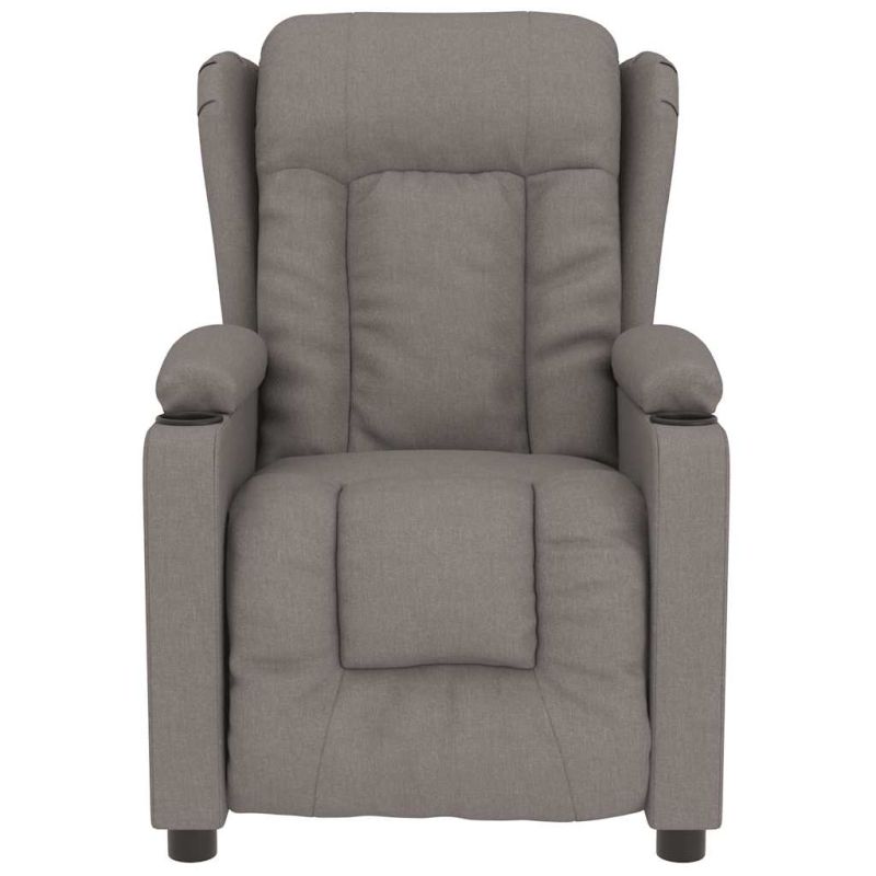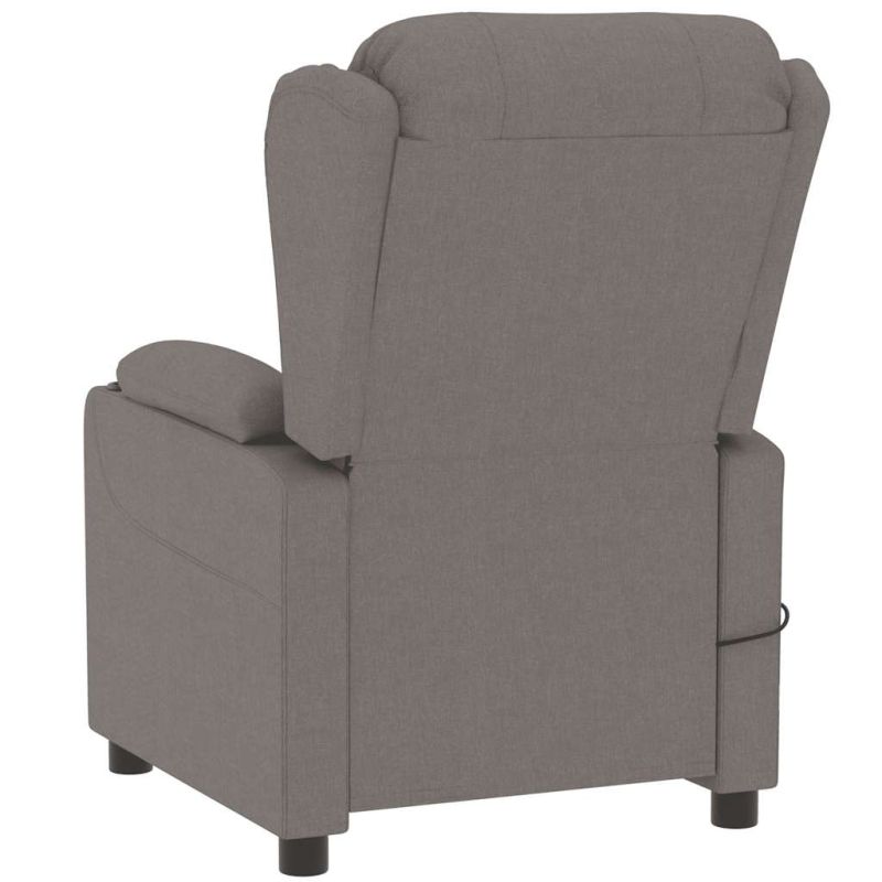 Облегнете се и се отпуснете в този изключително комфортен масажен стол! Функция за ръчно накланяне: Накланящият се стол е специално проектиран с 3 позиции на наклон, така че да можете да регулирате ръчно облегалката и поставката за крака според вашето удобство.Функция за вибрация: Представените 6 масажни точки ви позволяват да изпитате по-целенасочен масаж. Освен това включеното ръчно управление ви позволява да избирате различни програми за масаж. Функцията за масаж се захранва от USB конектора, но сертифицираният 5V USB източник на захранване не е включен.Удобно седене: Дебело подплатената седалка, облегалката и широките подлакътници, покрити с текстил, осигуряват уютно и топло усещане, което ви кара да се чувствате като в прегръдка, докато седите. Тъканта се отличава със семпъл и изчистен вид и е дишаща и издръжлива.Здрава и стабилна рамка: Рамката, изработена от дърво и метал, осигурява здрава структура и стабилност. Този накланящ се фотьойл е удобен и издръжлив.