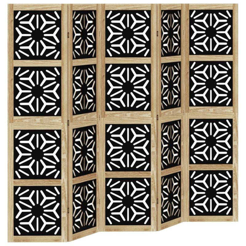 Разделител за стая 5 панела кафяво-черно дърво пауловния масив