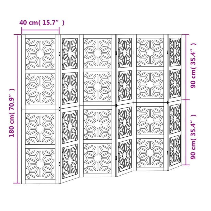 Внесете елегантност и привлекателен декоративен щрих във вашето пространство с тази очарователна преграда за стая. Издръжлив и лесен за почистване: Параванът за поверителност е изработен от инженерно дърво, което го прави лесен за почистване и издръжлив.Стабилна рамка: Рамката от масивно дърво пауловния гарантира здравина и стабилност. Масивното дърво от пауловния е красив естествен материал. Дървесината от пауловния е силно устойчива на насекоми и гниене.Гъвкав и лесен за сгъване: Всяка преграда е свързана с 3 метални панти, а горният и долният панел са свързани чрез скрити панти 2 в 1. Така панелът за разделяне на стая може лесно да се сгъне до известна степен според вашите нужди, за да спестите място.Многофункционален: Преградата за стая е чудесна за създаване на лично пространство във вашата спалня, всекидневна, офис и други интериори. Можете също да го поставите пред прозорец, за да блокира интензивната слънчева светлина.Атрактивен външен вид: Отличаваща се с геометричен изрязан дизайн, тази сгъваема преграда за стая добавя характер и декорация към пространството. Внимание:Само за вътрешна употреба.