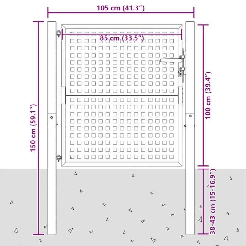 Тази градинска порта е чудесна комбинация от здравина, стабилност и устойчивост на корозия! Със сигурност ще бъде идеална входна точка за вашата градина, вътрешен двор или тераса! Издръжлив материал: Стоманата е изключително твърд и здрав материал. Той предлага здравина и стабилност.Практичен дизайн: Портата за вътрешен двор е заварена с дебела телена мрежа за допълнителна здравина. Тя предлага високо ниво на сигурност, като същевременно осигурява страхотен достъп до вашия имот.Заключващ се дизайн: Задната градинска порта има един комплект ключалка и дръжка, което гарантира, че портата за вътрешен двор може да се заключва добре.