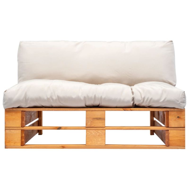 Градински палетен диван с пясъчни възглавници, борово дърво