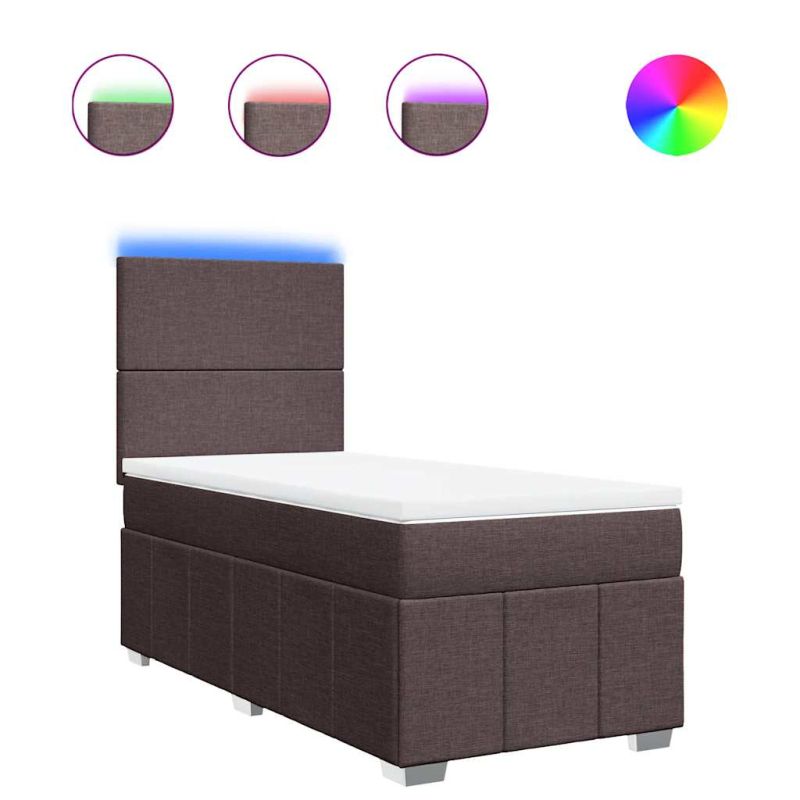 Боксспринг легло с матрак, тъмнокафяво, 90x200 см, плат