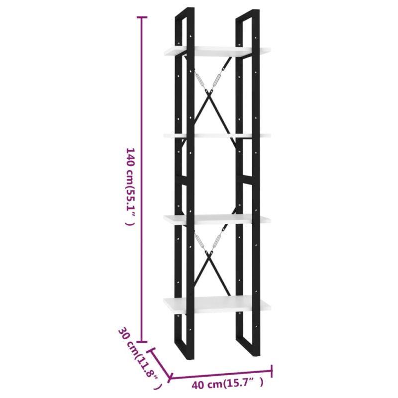 4-етажна библиотека, бяла, 40x30x140 см, инженерно дърво