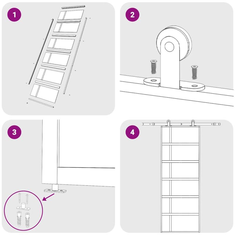Тази плъзгаща се врата създава грациозен преход от една стая в друга. Осигурява идеалното решение за спестяване на пространство. Стабилен материал: Алуминиевата рамка и ESG панелите добавят допълнителна стабилност. Добро уединение: Матираният дизайн защитава вашето уединение, като същевременно позволява естествена светлина в стаята ви. Безопасна и тиха: Благодарение на мекия стоп за спиране на вратата, тя може да се отваря и затваря тихо, когато отваряте и затваряте чрез задействане на буфер. Забележка:Висящите колела и горните плъзгащи се релси не са включени в доставката.Вратата може да се монтира само в комбинация с комплекти обков за плъзгащи се врати. Можете да намерите подходящите комплекти обков за плъзгащи се врати в нашия магазин (SKU: 145262, 145263), които трябва да бъдат закупени отделно. За начина на инсталиране можете да разгледате нашето ръководство за инсталиране на комплектите обков за врати и плъзгащи се врати. Не използвайте този артикул, ако някой от компонентите е счупен, скъсан или липсва.