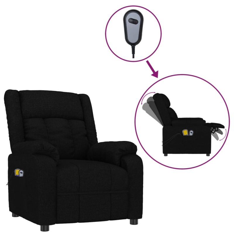 Облегнете се и се отпуснете в този изключително комфортен електрически масажен стол! Електрическа функция за накланяне: Столът с облегалка е оборудван с електрически мотор за функция за накланяне. Разполага с 3 позиции на легнало положение, така че можете лесно да регулирате облегалката и поставката за крака с включеното ръчно управление с 2 бутона според вашето удобство.Функция за вибрация: Представените 6 масажни точки ви позволяват да изпитате по-целенасочен масаж. Освен това включеното ръчно управление ви позволява да избирате различни програми за масаж. Функцията за масаж се захранва от USB конектора, но сертифицираният 5V USB източник на захранване не е включен.Удобно седене: Дебело подплатената седалка, облегалката и широките подлакътници, покрити с текстил, осигуряват уютно и топло усещане, което ви кара да се чувствате като в прегръдка, докато седите. Тъканта се отличава със семпъл и изчистен вид и е дишаща и издръжлива.Здрава и стабилна рамка: Рамката, изработена от дърво и метал, осигурява здрава структура и стабилност. Този накланящ се фотьойл е удобен и издръжлив. Този продукт не е играчка. Не позволявайте на деца да си играят с уреда. Почистването и потребителската поддръжка не трябва да се извършват от деца без надзор.Този уред не е предназначен за използване от лица (включително деца) с намалени физически, сетивни или умствени способности или с липса на опит и познания, освен ако не са получили надзор или инструкции относно използването на уреда от лице, отговорно за тяхната безопасност.
