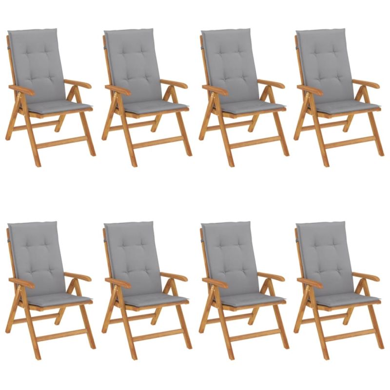 Наклоняеми градински столове с възглавници, 8 бр, тик масив