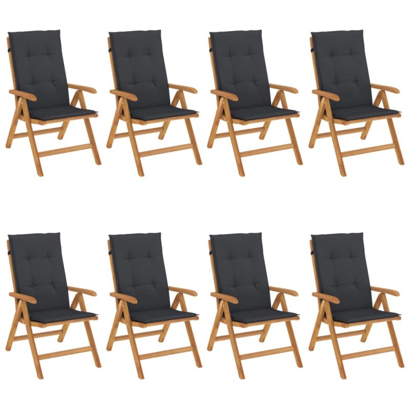 Наклоняеми градински столове с възглавници, 8 бр, тик масив
