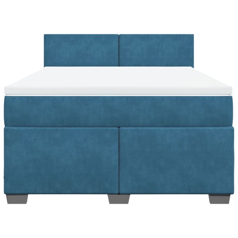 Боксспринг легло с матрак, тъмносиньо, 140x200 см, кадифе