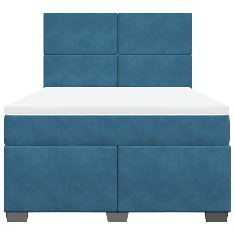 Боксспринг легло с матрак, синя, 140x190 см, кадифе