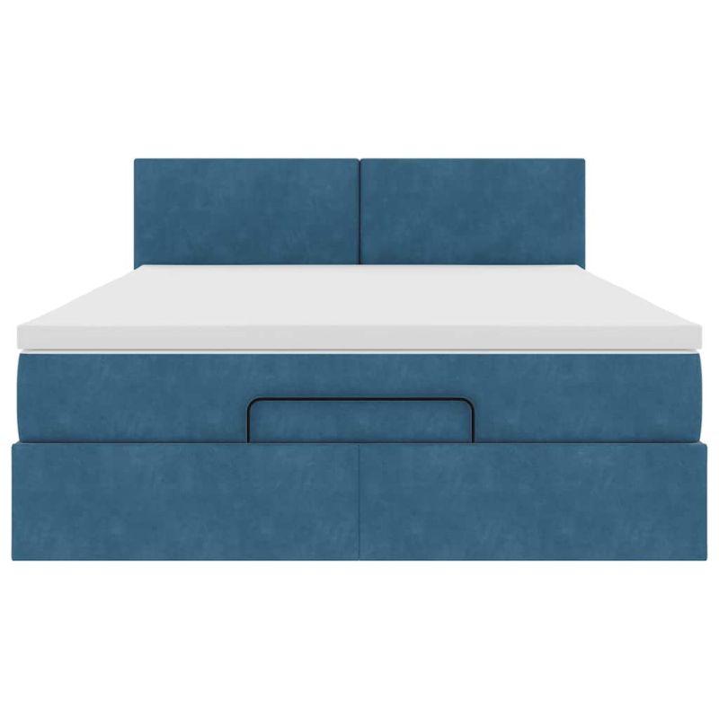 Османска легло с матрак и LED, тъмносиньо, 140x200 см, кадифе