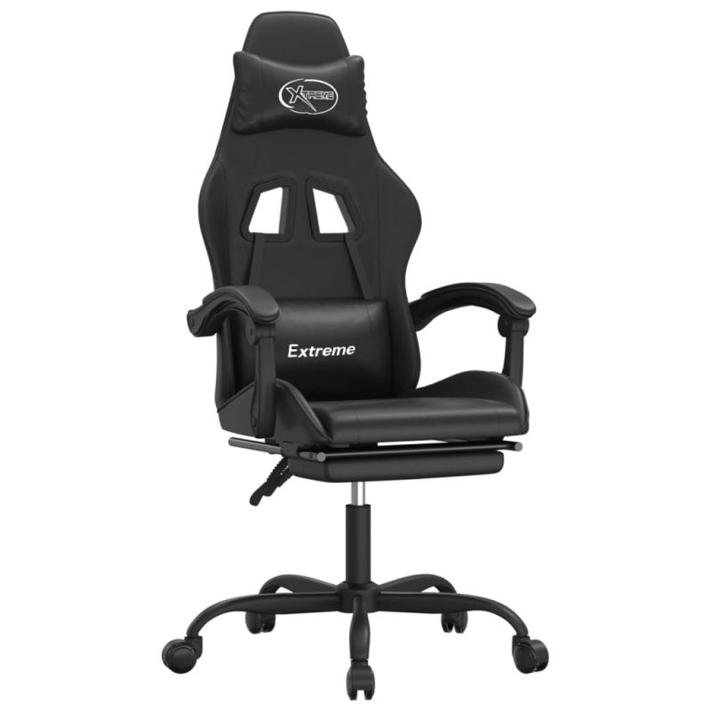 Гейминг стол с опора за крака, черен, изкуствена кожа