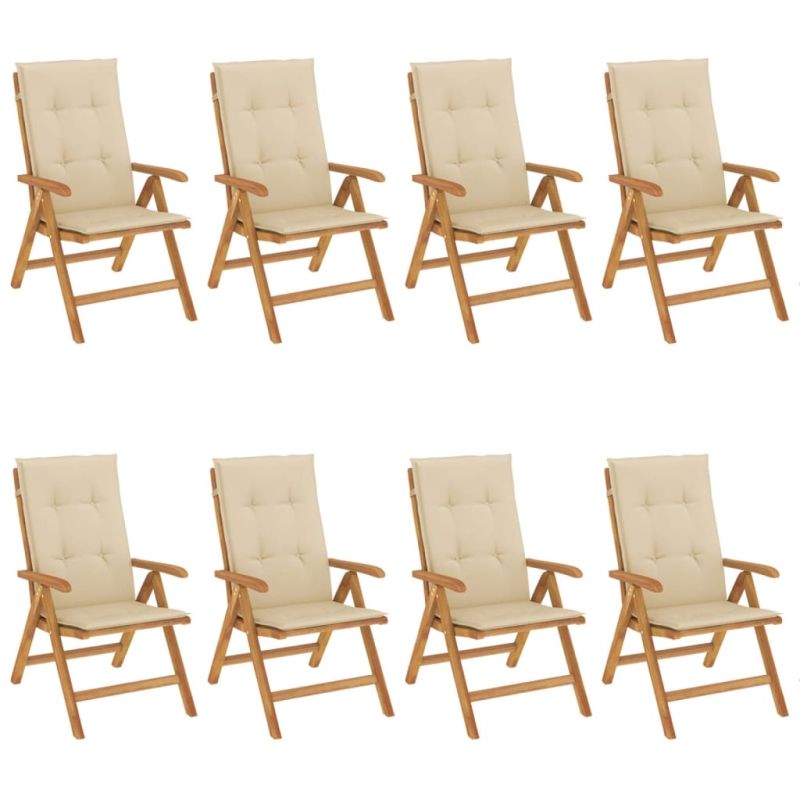 Наклоняеми градински столове с възглавници, 8 бр, тик масив