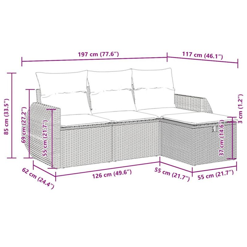 Този градински диван е идеалното допълнение към вашия заден двор, тераса или вътрешен двор, осигурявайки удобно и привлекателно пространство за разговори със семейството и приятелите или просто за почивка и забавление на открито. Издръжлив материал: PE ратан, известен също като полиратан, е здрав синтетичен материал с малко необходима поддръжка, който прилича на естествен ратан. Той е лек, лесен за почистване и често се използва за външни мебели поради своята издръжливост и устойчивост на атмосферни влияния.Функция за съхранение с водоустойчива чанта: Всяка градинска седалка разполага с място за съхранение под седалката, допълнено с водоустойчива чанта за съхранение на възглавници, играчки и други предмети. Вътрешната чанта има горен капак и може да бъде здраво закрепена към седалката със закопчалки за допълнителна стабилност.Универсална табуретка за крака: Табуретката е универсална и служи като удобна поставка за крака, когато се излежавате на дивана или като допълнителна седалка във вашата градина.Калъф, който може да се сваля и може да се пере: Тези възглавници за седалки имат подвижни калъфи за лесно пране и поддръжка.Здрава и стабилна рамка: Прахово боядисаната стоманена рамка е здрава, стабилна, издръжлива и устойчива на корозия и неблагоприятни атмосферни условия, което гарантира дълготрайна експлоатация. Добре е да се знае:За да сте сигурни, че вашите външни мебели ще останат красиви, ви препоръчваме да ги защитите с водоустойчиво покривало.