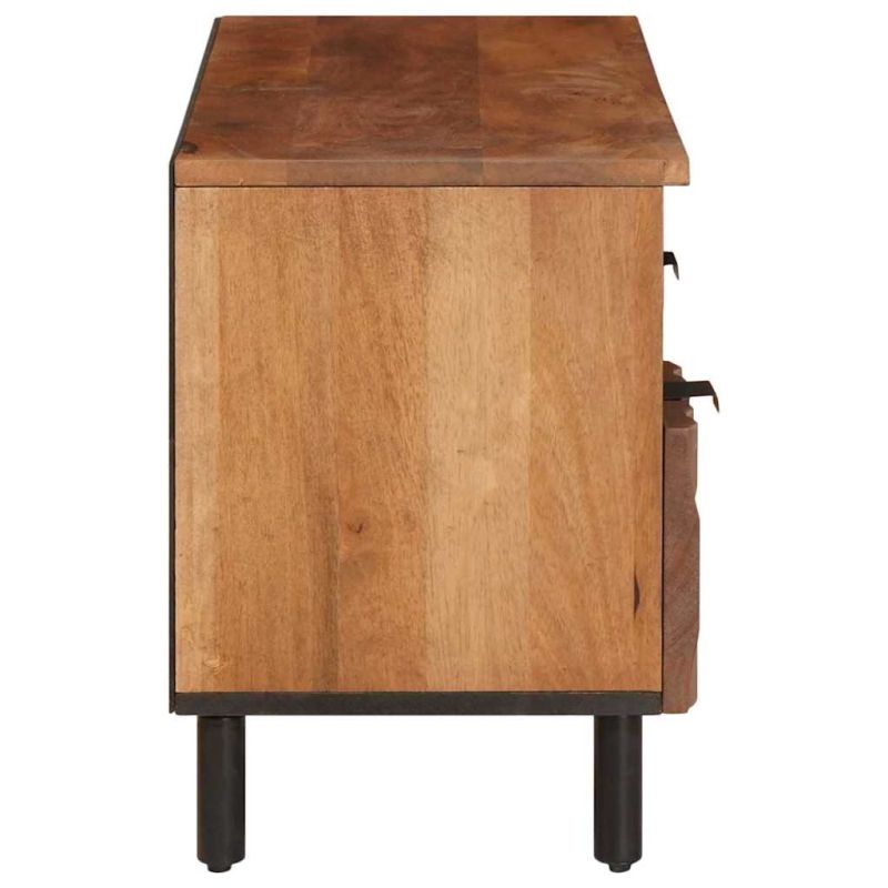 Този модерен телевизорен шкаф има минималистичен дизайн, идеален за съвременни жилища. Създаден с визия за простота и функционалност, той внася ясни линии и елегантност в всеки дом. Практичен и стилен, този низък шкаф предлага ефективно решение за организиране на вашите медии. С простата си структура и многофункционален дизайн, той съчетава функционалността с елегантността, лесно се вписва в различни стилове на декора. Материали: Изработен от здраво мангово дърво и МДФ, шкафът подчертава стабилността и естетиката. Естествените вълни на дървото добавят топлина на вашето пространство, съчетавайки стил с функционалност. Включени компоненти: Шкафът предлага рафтове за медии и удобни дръжки за лесно ползване. Стилни желязни крака осигуряват стабилност и подчертават актуалността му. Характеристики/Функции/Дизайн: Шкафът е здрав и ще следва вашите нужди за медийно съхранение в продължение на години. С прост, но изтънчен дизайн, той осигурява основа за телевизори и електроника, което запазва непоклатима и подредена атмосфера. Препоръчителни приложения: Шкафът е проектиран да бъде част от всекидневната, осигурявайки решения за съхранение на телевизионни единици, игрови конзоли и декорации. Дизайнът му поддържа различни конфигурации в стаите, правейки го адаптивен. Грижа и поддръжка: Поддържайте го чист, просто използвайте суха кърпа. Дръжте се далеч от агресивни химикали, за да защитите естествения вид на дървото и да удължите живота му, така че да бъде важна част от вашия интериор.
