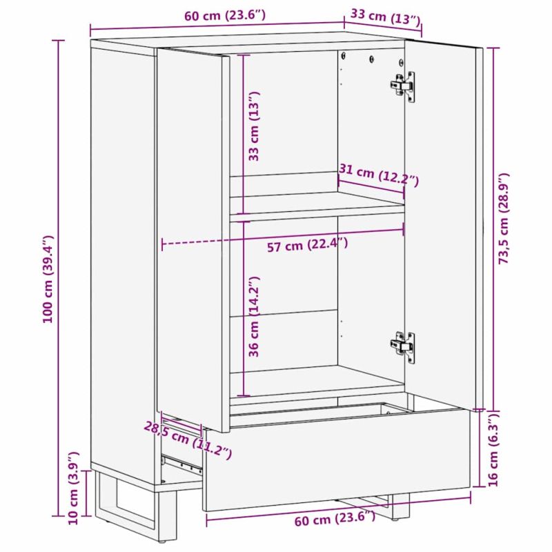 Този сервиз е не само шикозен, но и супер полезен за вашата трапезария или дневна. С модерен дизайн, който идеално допълва съвременния интериор, е правоъгълен и е идеален център за всяка стая. Сервизът комбинира практичност с елегантен вид и предлага пространство за всичко необходимо в дома. Подходящ е за всякакви конфигурации на интериора и носи баланс между естетика и функционалност. Материали: Направен е от издръжлива мангова дървесина, проектиран за дълготрайна красота и функционалност. Комбинацията с инженерни дървесни компоненти му дава сила и стабилност. Включени компоненти: Сервизът идва с издръжливи врати на панти, които лесно се отварят и затварят, за да имате лесен достъп до обширното пространство за съхранение. Дръжките с копче добавят леко, но удобно решение. Характеристики / Функция / Дизайн: Проектиран с внимание към издръжливостта, този сервиз има здрава структура и стабилни метални квадратни крака. Те увеличават здравината на конструкцията и предлагат надеждна поддръжка. Препоръчителни употреби: Перфектен за трапезарии и дневни, този сервиз предлага многобройни опции за съхранение. Може да съхранява всякакви предмети, от прибори до декори, и безпроблемно се вписва във вашия интериор. Грижа и поддръжка: Лесен за поддържане, просто избършете с суха кърпа. Избягвайте да употребявате агресивни химикали, за да запазите външния му вид.