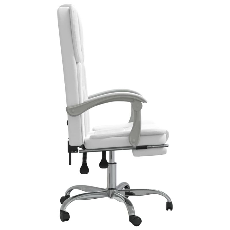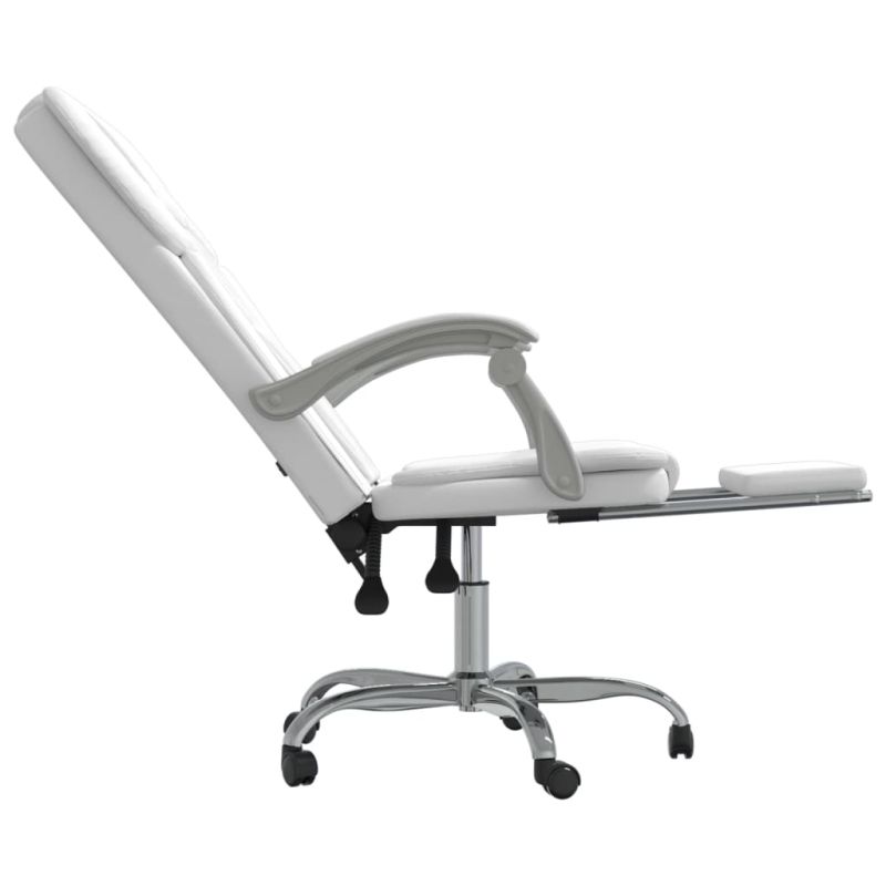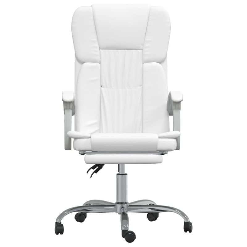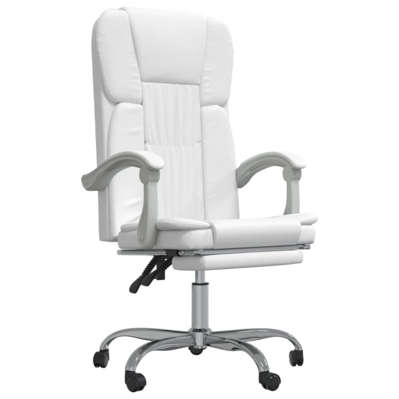 Отличаващ се с минималистичен дизайн, този модерен наклоняем офис стол съчетава елегантност и комфорт, което го превръща в атракция във вашето работно пространство. Издържлива изкуствена кожа: Първокласната изкуствена кожа е изключително издръжлив материал. Устойчива е на петна, което я прави лесна за почистване с влажна кърпа. Гладката повърхност също така придава луксозен вид и красотата на истинската кожа.Регулируема облегалка и височина: Той е специално проектиран с функция за накланяне, така че да можете да регулирате облегалката и опората за крака по вкуса си. Използвайте лоста, за да регулирате височината на седалката си по ваш вкус.Удобен дизайн: Въртящият се на 360 градуса дизайн позволява по-широк обхват на движение. Освен това е удобно да се придвижвате с въртящите се колелца.Здрава и стабилна рамка: Рамките от метал и шперплат осигуряват здравина и стабилност. Забележка:Всеки продукт се доставя с ръководство за сглобяване в кашона за лесно сглобяване.
