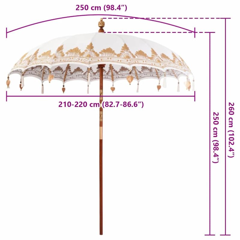 Балийският чадър е уникален външен чадър, който добавя щипка екзотична елегантност в всяка градина или на терасата. С красивия си кръгъл памучен покрив, ръчно бродиран, той наистина е нещо специално. Перфектен за летни събирания, той излъчва спокойна тропическа атмосфера, докато предлага сянка с големия си покрив. Неговата стилна естетика носи естествено очарование, идеална за хранене на открито или почивка под него. Ръчно изработена елегантност: Всеки стълб е изработен изкусно от занаятчии, придавайки уникален акцент на чадъра. Здравата дървена конструкция му придава стабилност, като същевременно е красив елемент за всяко открито пространство. Ръчно направените детайли увеличават автентичността и привлекателността на чадъра. Тропически настроения с бамбукови детайли: Бамбуковите ребра придават форма на покрива и осигуряват необходимата опора. Материалът отразява тропическата същност на чадъра, давайки му балийски стил, който хваща красотата на природата. Избягвайте сурови метеорологични условия, тъй като той е за летни мигове, осигурявайки прохлада в жегата. Декоративен и функционален покрив: Специалният памучен покрив е не само красив, но и защитен от слънцето. Просторният му размер предоставя комфорт и сянка дори и в най-слънчевите дни, правейки го чудесен за социални събития или самостоятелно релаксиране на терасата. Очарователни акценти: Добавените звънчета и китки внасят игривост и движение, придавайки му живина. Тези елементи добавят текстура и стил, привличайки погледите и създавайки приятно изживяване. Грижа и дълговечност: Защитете чадъра при лошо време, като го приберете или покриете. Редовното нежно почистване ще помогне да запазите привлекателността му за дълго време. Лесно се мести с отвертка, за да остане красив през годините.