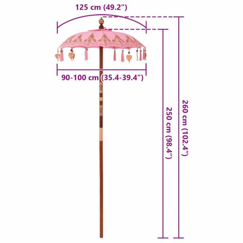 Хванете спокойната същност на балийската култура с уникалния балийски чадър, перфектно проектиран да носи мир и стил на вашите открити пространства. С ръчно изработен дървен стълб и изискани детайли, този чадър създава хармонична среда, идеална за градински партита, релаксиращи уикенди или елегантно хранене на открито. Меката памучна повърхност и естествената бамбукова рамка прилягат перфектно на природата, предлагайки тропическа атмосфера, която вашите гости ще обожават. Представете си как организирате приятен следобеден Gathering под неговото широко покритие, създавайки спомени с комфорт и стил, вдъхновени от тропическите рая. Материали: Направен от дишащ памук и здрав бамбук, този балийски чадър съчетава естествената елегантност на масивното дърво с устойчивостта на качествена изработка. Памукът е известен със своите дишащи свойства и мека текстура, а устойчивостта на бамбука осигурява сила и стил. Тази конструкция предлага сянка и може да се използва редовно на открито, като обещава и стил, и практична стойност. Включени компоненти: Включва ръчно изработен стълб от масивно дърво, който добавя автентичен балийски чар, а централният хъб, тъкан с въже, осигурява стабилност и елегантност. Бамбуковите ребра поддържат конструкцията на чадъра, осигурявайки необходимата подкрепа за широчината му. Звънчетата и ресните добавят декоративен елемент, свързващ функционалността с естетиката. Функции / Дизайн: Голямото покритие на чадъра осигурява обширна сянка, което го прави перфектен за горещи дни. Проектиран е за слънчево време и е идеален за летни души, когато е необходима прохлада. Формата на чадъра остава стабилна и надеждна, а сглобяването с отвертка е лесно, позволявайки бърз монтаж и съхранение. Препоръчителни използвания: Идеално за използване в градини или на тераси, чадърът страхотно допълва откритите пространства, търсещи културно и декоративно обогатяване. Перфектен за летни вечери, той превръща обикновените места в интимни убежища. Поддръжка: При лошо време, използвайте защитно покритие или прибирайте чадъра на закрито, за да запазите целостта му. Прости методи за почистване ще запазят дългосрочната му привлекателност, правейки го привлекателен фокус на внимание през годините.