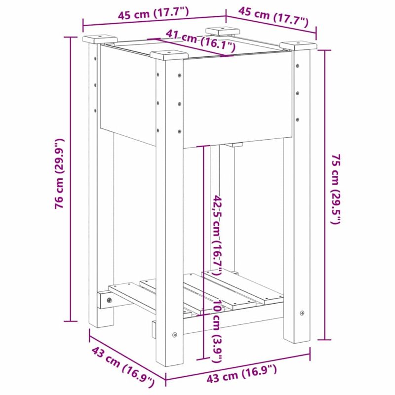 Градинска саксия Бежово 45 x 45 x 76,5 см Солидно ела дърво